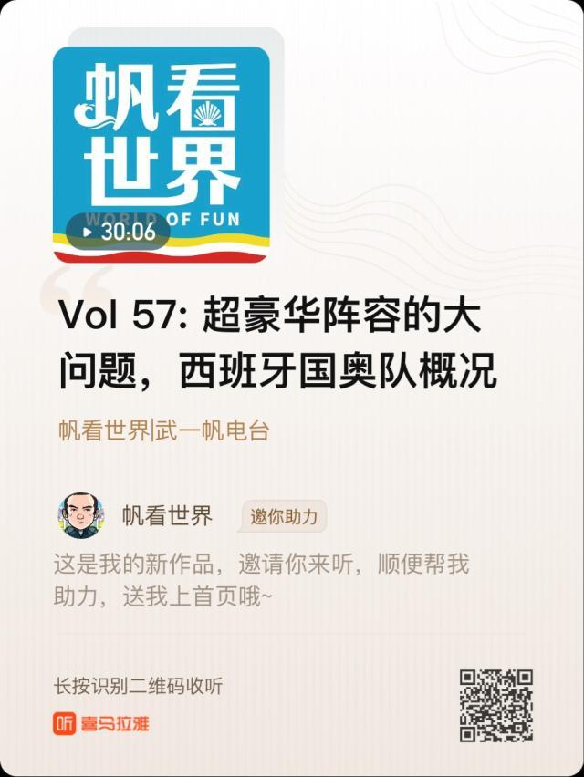 点击下方链接,或登录喜马拉雅搜索“帆看世界”,即可收听节目,和武一帆一起说足球,观天下。
